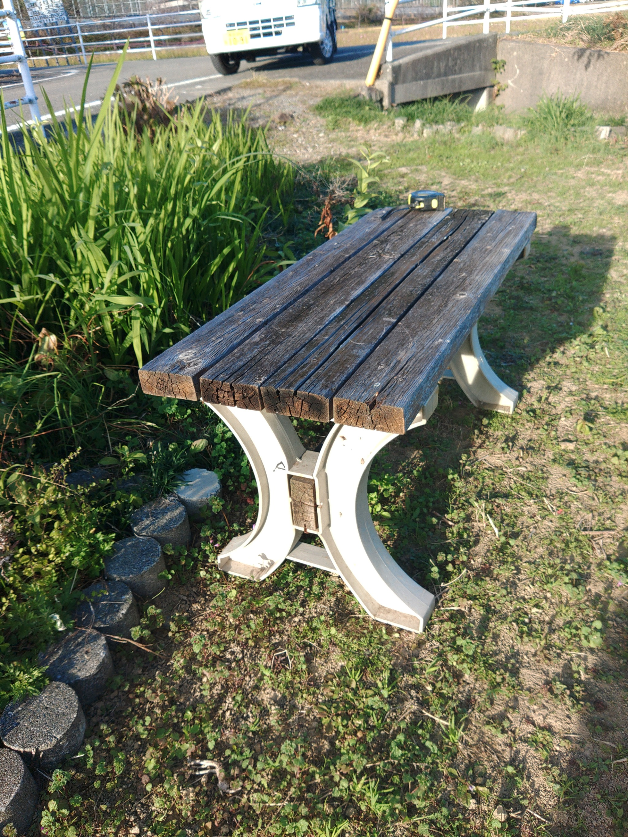 既存ベンチは公園に設置されていたので,座面部分の板がほぼ腐っています・・(-“-)